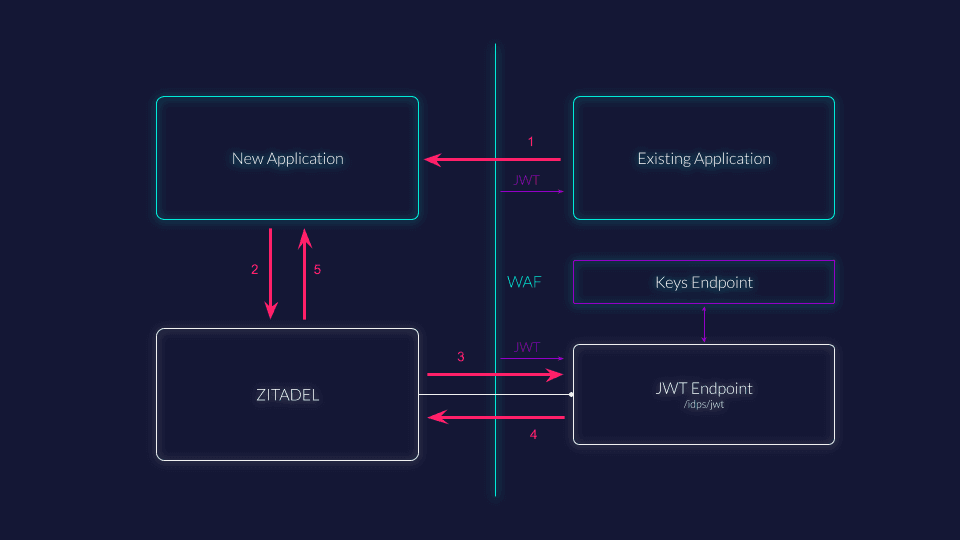 Configuring JWT IdP enables ZITADEL to accept a JWT generated by an external authentication system, such as your WAF or a legacy app. The typical setup involves obtaining the JWT from the user's previously established session.