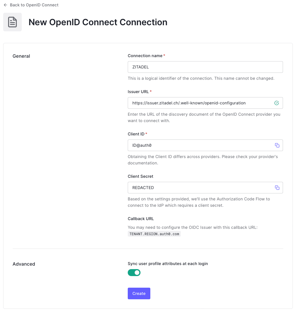 Log in with ZITADEL on Auth0 through OIDC