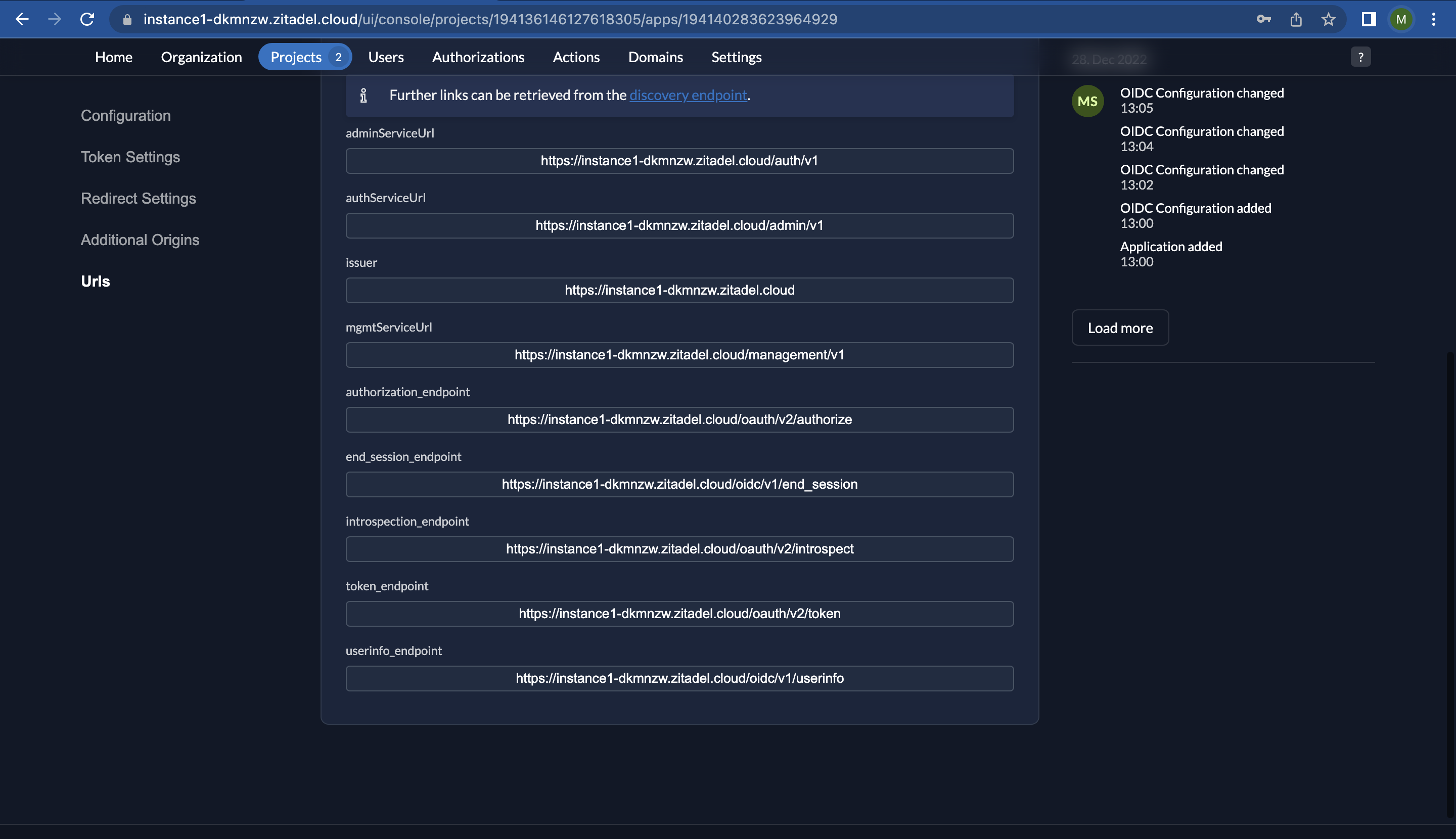 - The issuer URL and userinfo endpoint can be accessed by clicking on “URLs” on the left. Make note of the corresponding values for “issuer” and “userinfo_endpoint”.