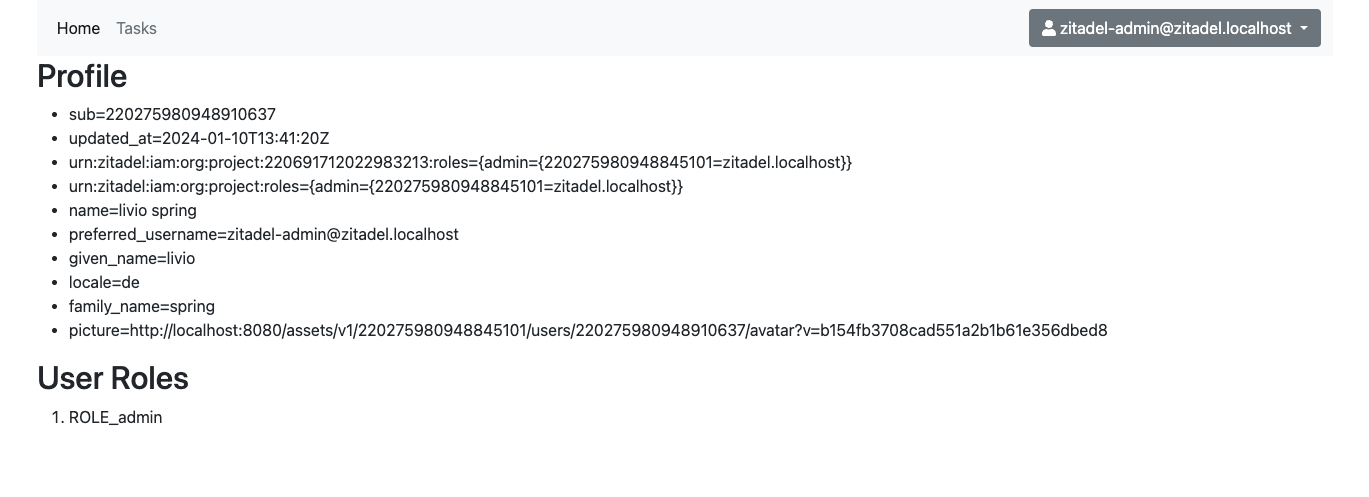 - Requesting ZITADEL userinfo endpoint to get user data